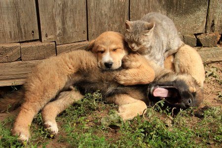 Самые верные спутники человека, кошка и собака, почти как луна у земли…
