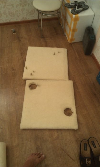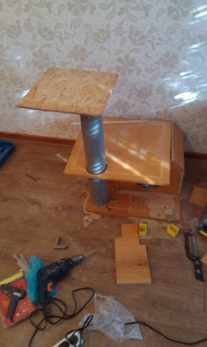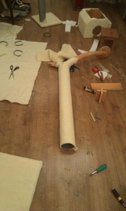 Проще купить готовый домик, чем расставлять это громоздкое сооружение! Никакого удобства, ни эстетики, и везде шерсть будет тащиться! Коту может и понравится…
