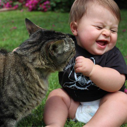 Котик, который целует малыша.
