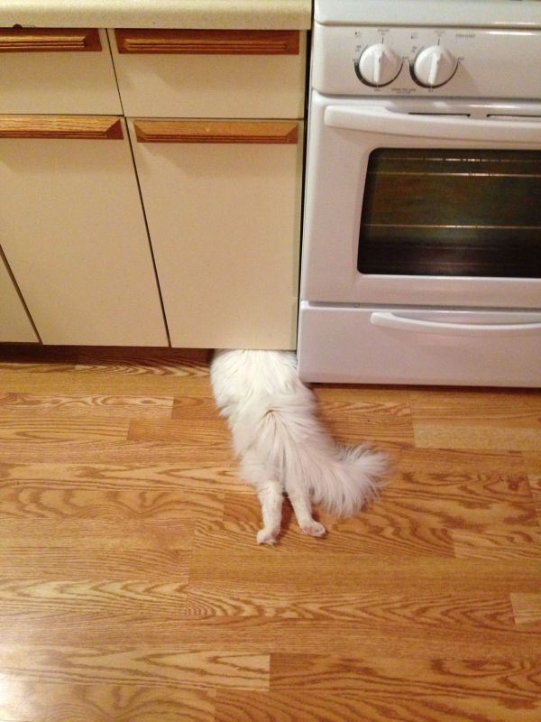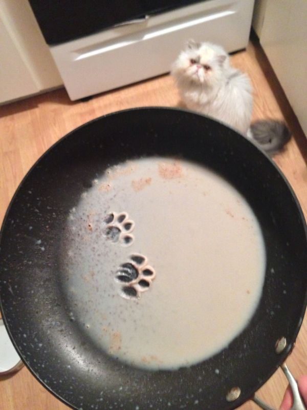 Особенно — лапки из-под кухонного стола торчащие и следы в сковородке, и еще..., и...!