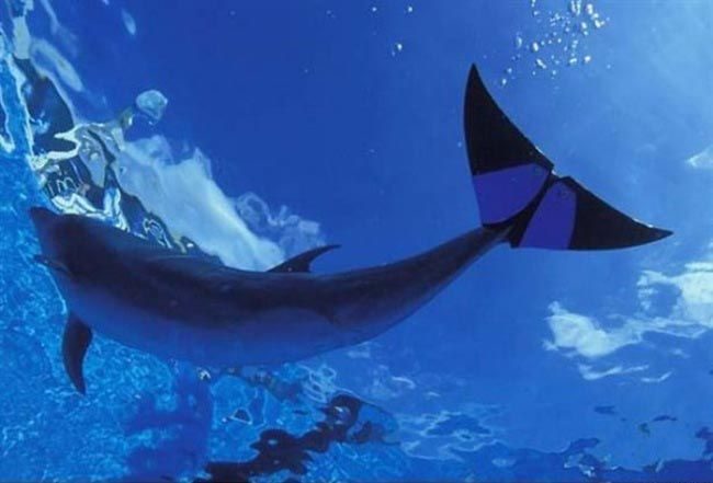 У Фуджи было таинственное заболевание, из-за которого врачи были вынуждены ампутировать большую часть её хвостового плавника. Хоть она и могла плавать, но японские ветеринары знали, что для полноценной жизни, ей понадобится новый плавник. За этим они обратились в Bridgestone Corp. которая разработала для афалина новый хвостовой плавник. Теперь 34-летнее млекопитающее Фуджи может вести полноценную жизнь, точно также как и остальные дельфины. Хоть из-за соображений безопасности Фуджи и использует плавник около 20 минут в день, она выглядит гораздо более счастливой.
