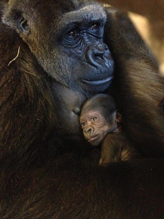 Маленькая горилла со своей мамочкой.
