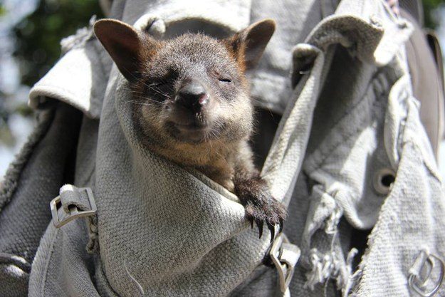Кенгуренок знакомится с новой подружкой.