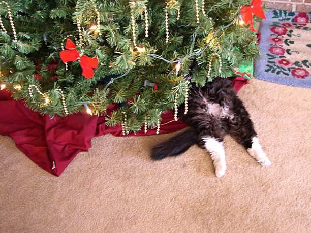 Лучшее украшение новогодней елки — это не шарик, не золоченая шишка и даже не гирлянда с кучей цветных огоньков. Самое незаменимая вещь для украшения новогодних деревьев — кот домашний, одна штука.