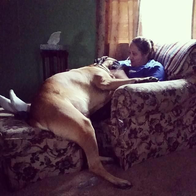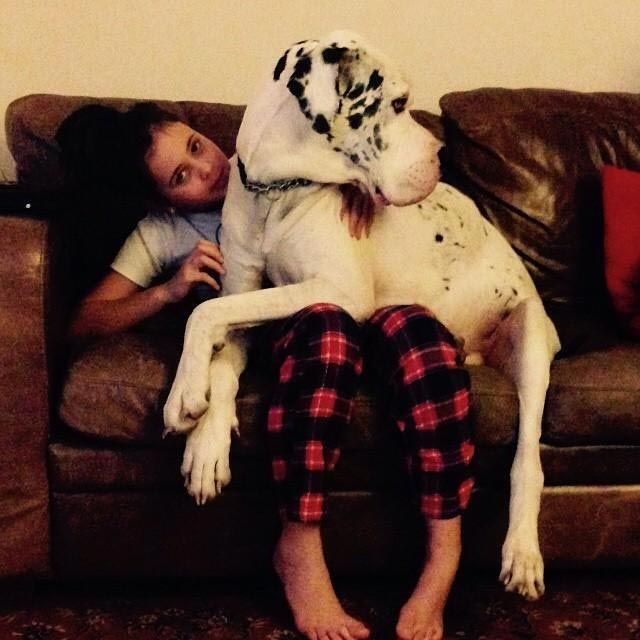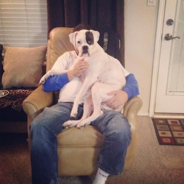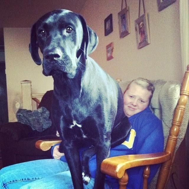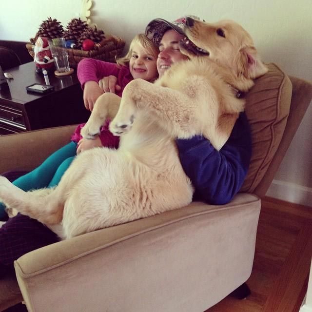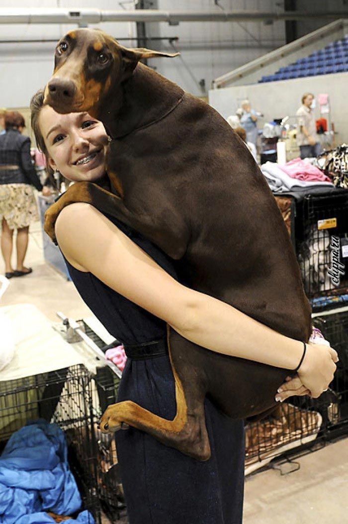 Здоровенные собаки тоже хотят сидеть на коленях у своих хозяев и запрыгивать к ним на руки с разбега, при этом не думая о том, что масса их тела равна весу хозяина, ведь главное, что таким способом они хотят показать нам свою любовь!