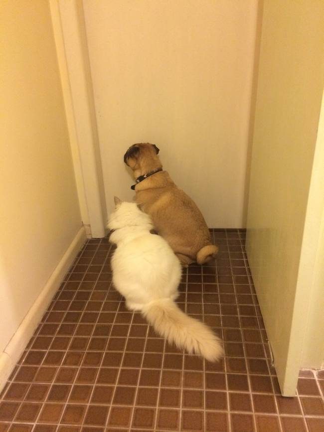Эти животные предпочитают не разлучаться со своими хозяевами и сопровождают их даже в ванную комнату, хотят они того или нет.