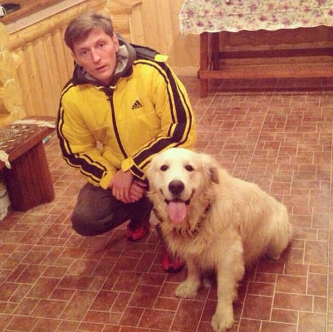 Павел Воля и Ляйсан Утяшева, проходя мимо одного московского супермаркета, подобрали бездомную собаку, а затем нашли ей хозяев.