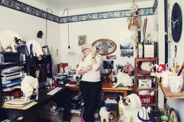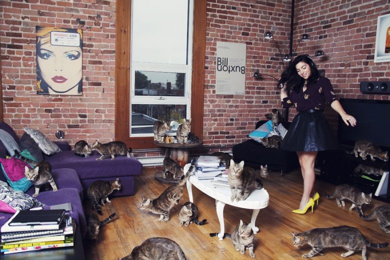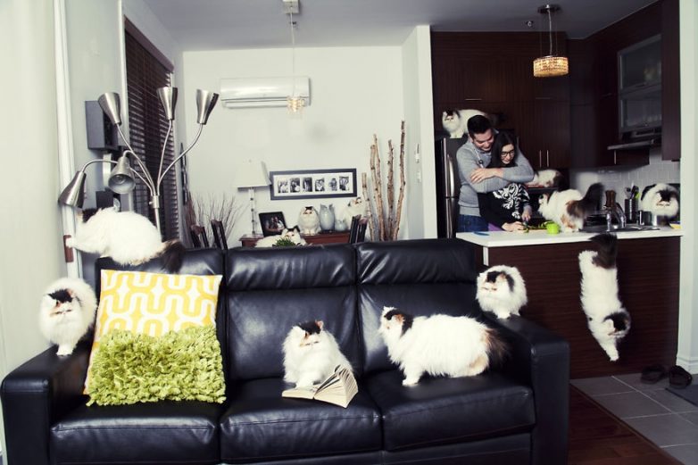 Андреан Лупен (Andreanne Lupien) с помощью ретуши в Фотошопе показал, как выглядят сумасшедшие кошатники в разных социальных слоях и разных странах мира. На всех работах изначально находились один или два кота, которые затем были добавлены в огромном количестве в жилое пространство.
