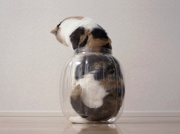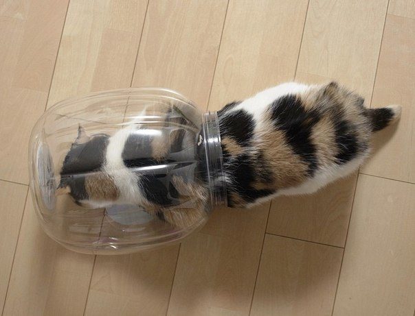 Всем известна тяга котов и кошек к коробкам. Оказывается, они в банке непрочь посидеть