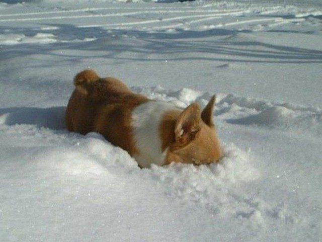 Собаки чувствуют тоже самое, при виде первого снега в их жизни. В то время как некоторые начинают бегать и резвиться, другие остаются в недоумении и т.д. Каждый экспериментирует по-своему. Но самое главное, что это дает нам удивительно добрые и милые образы наших четвероногих друзей.