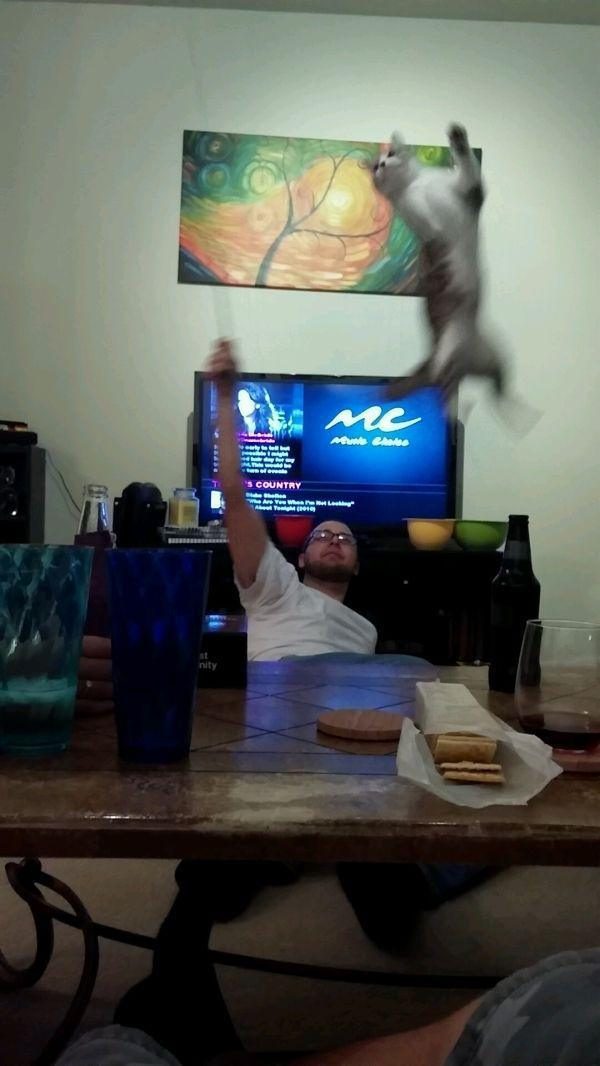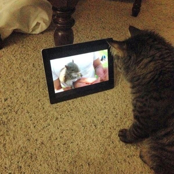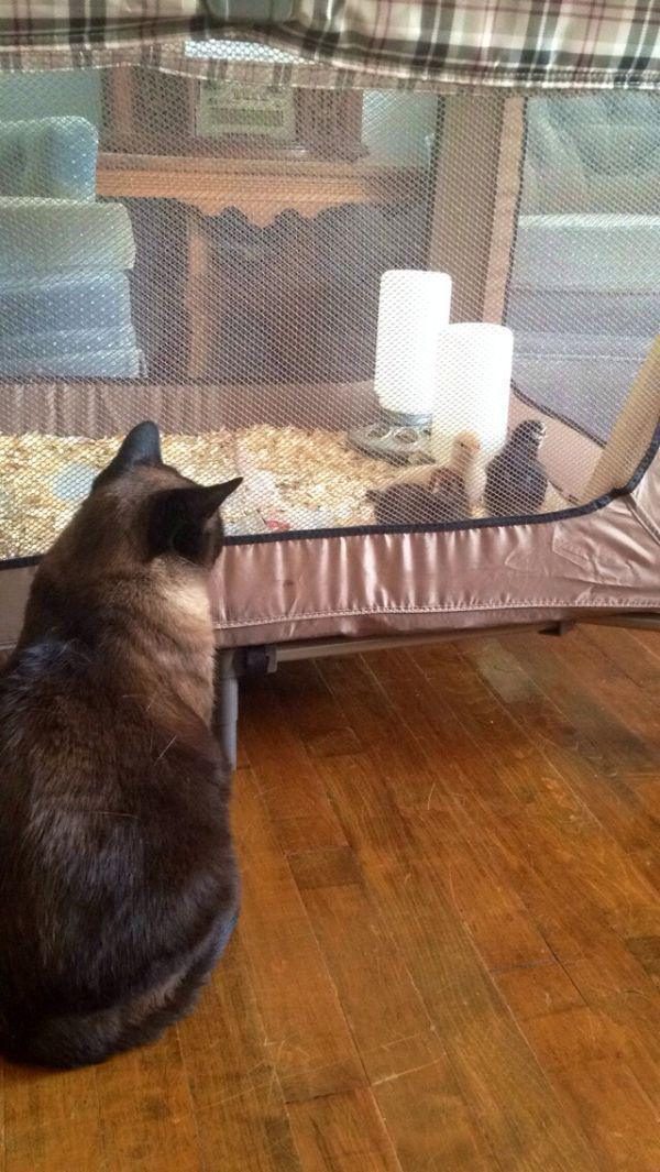 На последнем: котишку, видать, в угол поставили за провинность и наблюдателя закрепили…