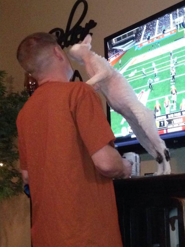 Первое место рыжему у батареи и мелкому, балдеющему у мужика на ручках.