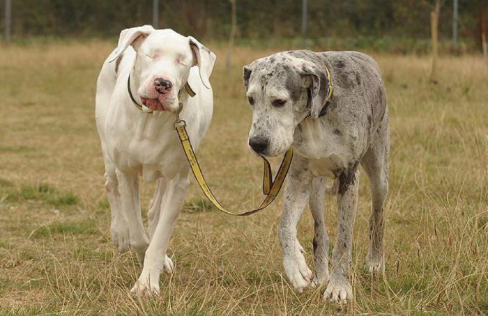 Белоснежная Лили потеряла оба своих глаза вследствие тяжелой болезни. Но она смогла найти себе верного друга-поводыря.