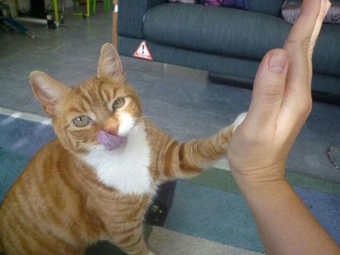 Сколько уже было смешных котов, а сколько ещё будет! Подборка анимаций, на веселую кошачью тему " Давай пять". Смотрите — веселитесь!