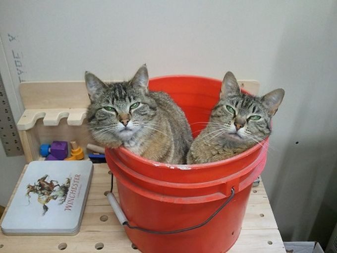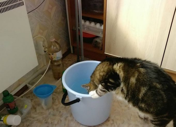милашки, но мой кот по ведрам не лазает, все больше на коленки мастится, или на спине сидит