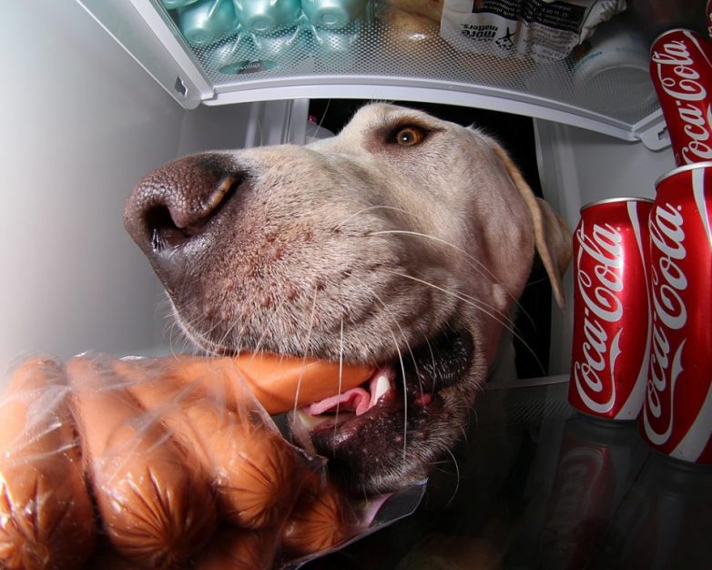 Ну, допустим в холодильник он не без ведома хозяина пробрался. Считаю, что сосиски он заслужил, хотя лучше бы кусок мяса, а не этот суррогат!