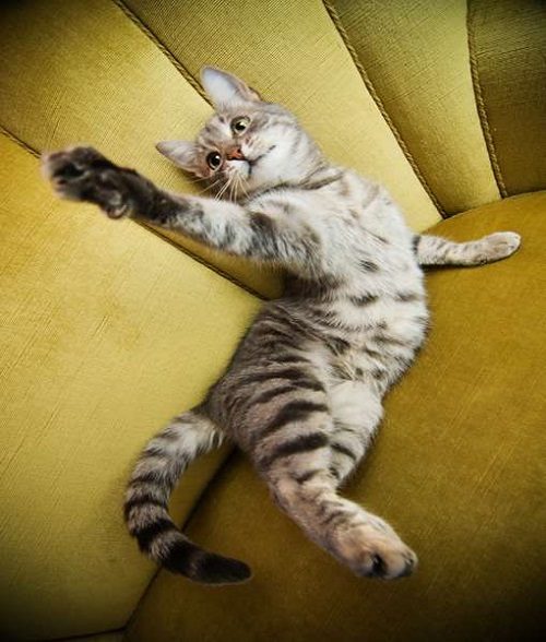 Кот лежит на спине, и его открытый живот указывает на чувство уверенности и безопасности в окружающей обстановке. Но в этой позиции он может защититься при необходимости. Даже в положении лежа, все четыре лапы готовы к атаке. Те, кто попытается погладить животик кошки в такой позе, будут жестоко проучены укусами и когтями.