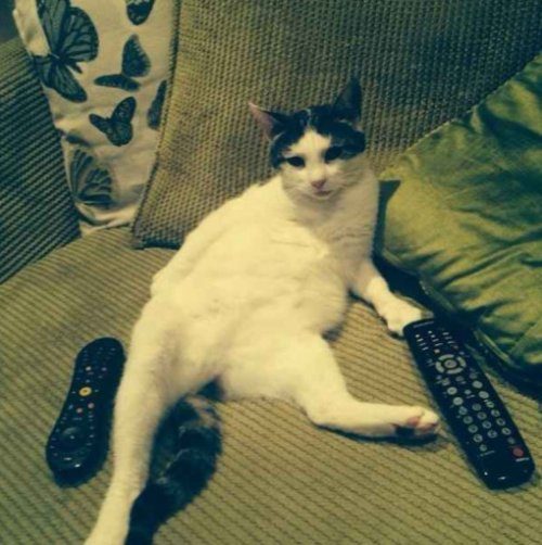 Эти кошки, как и многие из нас, тоже любят удобно разлечься на диване, запастись любимой закуской и, переключая каналы, смотреть свои популярные фильмы и сериалы: