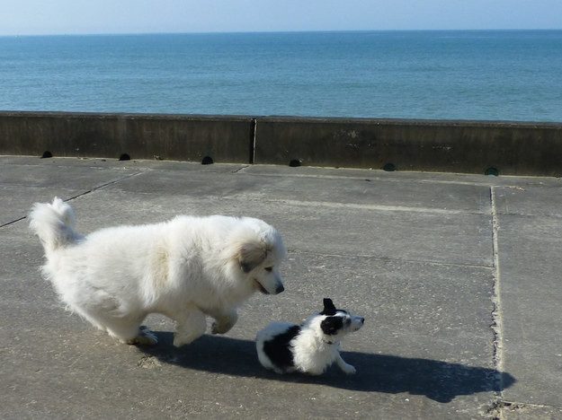 5. И эти пёсики, которые слышали о больших собаках, но были просто потрясены, когда впервые увидели одну из них!