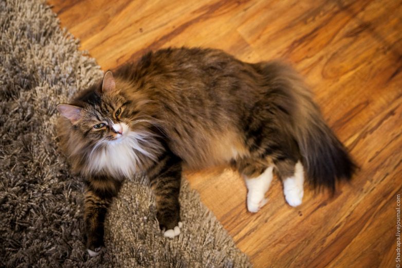 Итак, Кот мой всегда гордился своей роскошной шевелюрой, регулярно ее демонстрировал каждому пришедшему в дом, катаясь по полу.