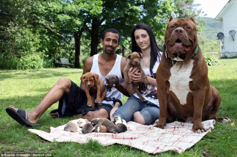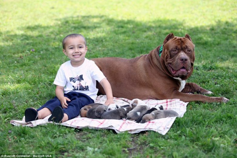 Пёс породы американский питбультерьер по кличке Халк стал отцом восьми очаровательных щенков, которые оцениваются в полмиллиона долларов! Несмотря на свой грозный внешний вид, по словам хозяев Халк является добродушной и спокойной собакой и отличным папой!