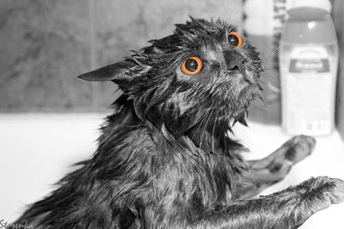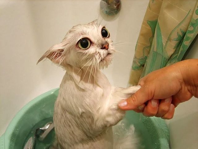 Я всегда мыла моих любимых котеек, взяв за шиворот и опуская в ведро с водой, это было необходимо очень редко, при их каком-то удивительном загрязнении. Об этом рассказываю потому, что сейчас даже историю в интернете демонстрируют. На весу кошки не сопротивляются, а потому их можно спокойно помыть и они не страдают. И вас продолжают любить.