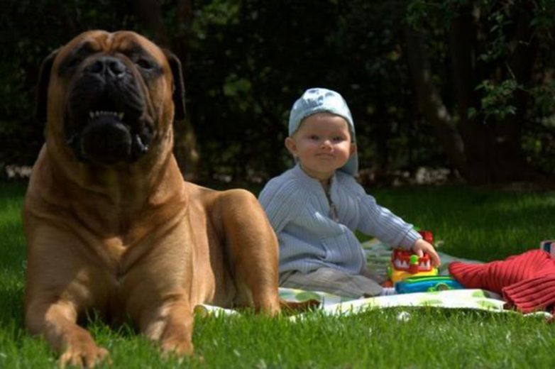 Отличное доказательство, что большой пес никогда не обидит и ему можно доверить даже маленького ребенка!!!
