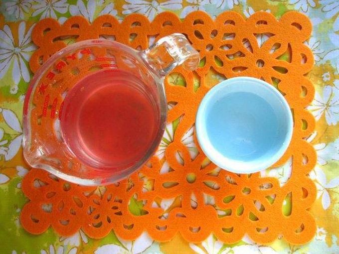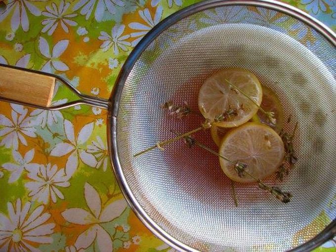С помощью сита вытащите все ингредиенты. Вода почти приобрела цвет лаванды, и у нее появился легкий цитрусовый аромат.