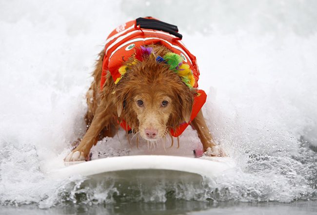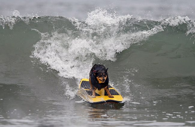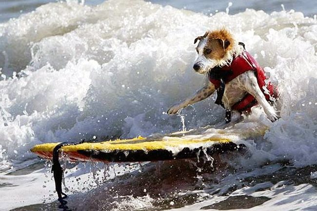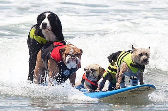 В начале августа на калифорнийском пляже Imperial Beach состоялся 10-й ежегодный турнир по собачьему серфингу (!). За титул лучшего серфингиста боролись собаки большие, средние и маленькие.