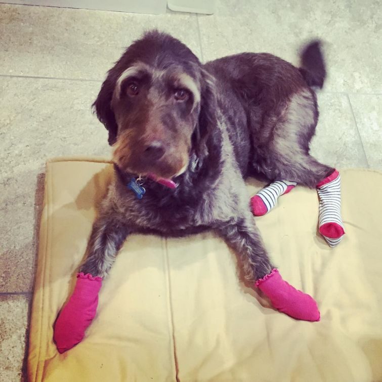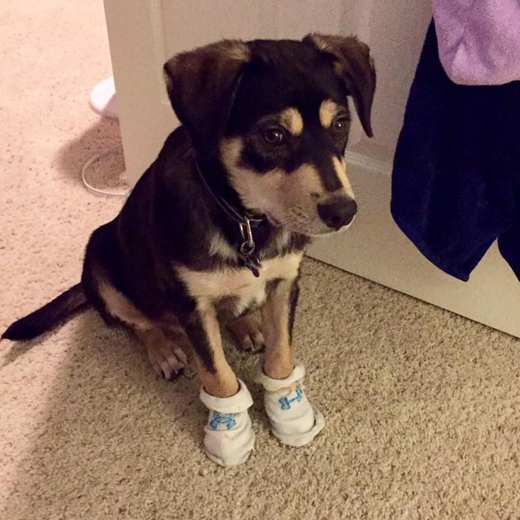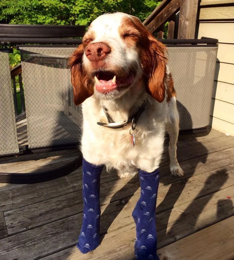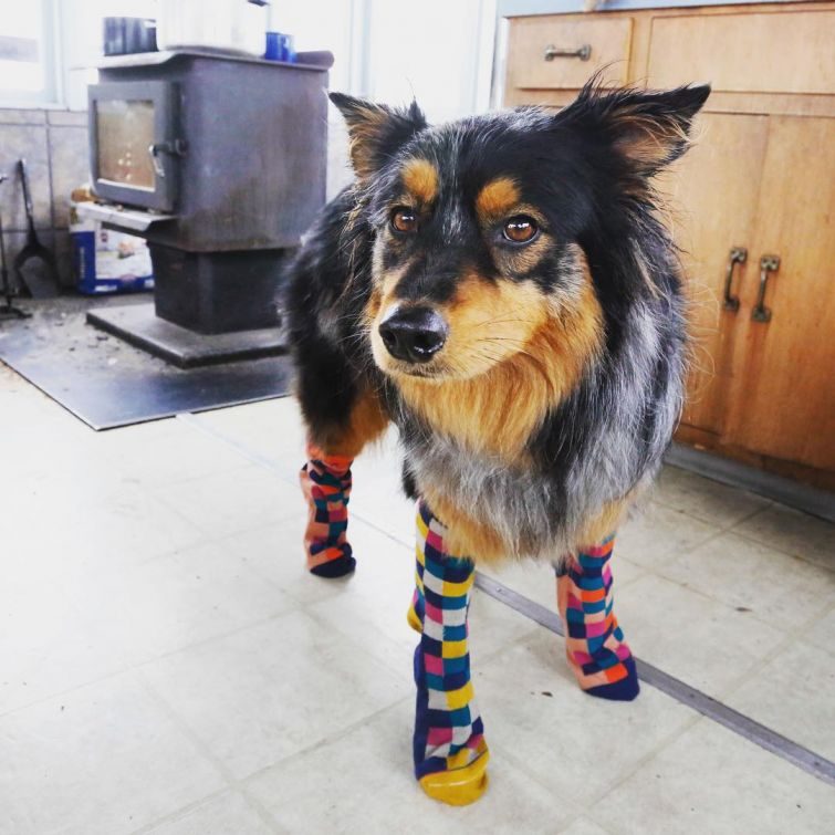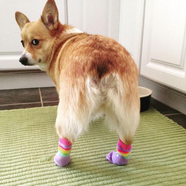 Но не стоит забывать, что братья наши меньшие тоже мёрзнут и они были бы очень даже не против получить в подарок тёплые носочки жизнерадостной расцветки. Но к категории любителей вязаных изделий относятся только собаки, ведь кошки слишком своенравны, да и чувство юмора у них хромает.