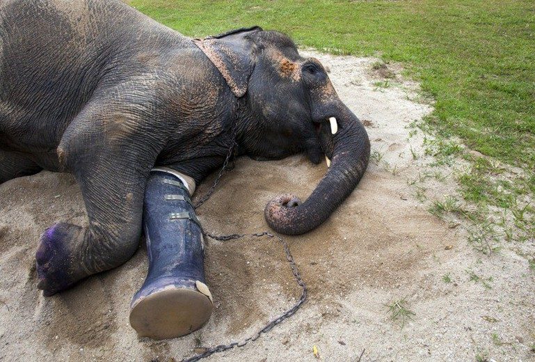 Это Тайланд. Больница открыла двери для многотоннажных братьев наших меньших в 1993 году, и на сегодняшний день медперсонал уже поставил на ноги более 400 слонов.