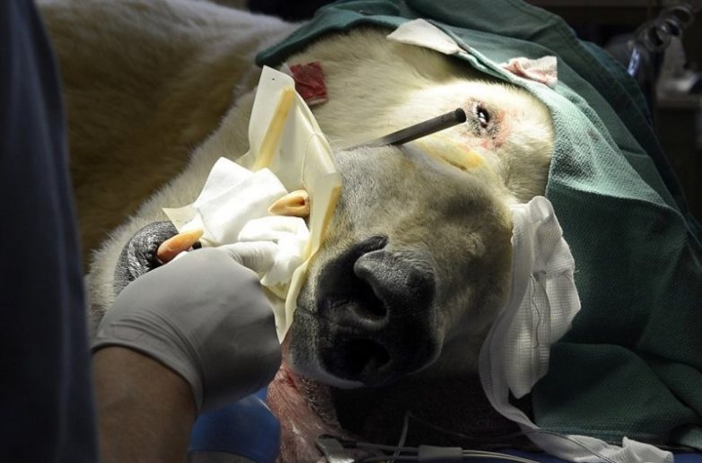 На этих фото процедура регулярного медицинского осмотра медведя, которую он проходит 2 раза в год.