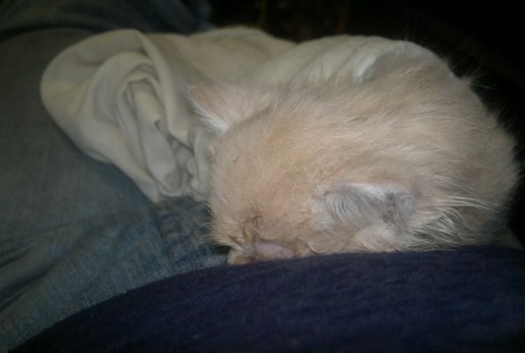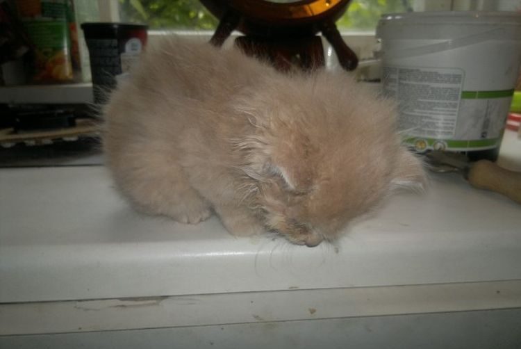 В саду на аллее (автор) жена нашла — мокрый, дрожащий и без остановки пищащий комок, который поместился на ладони.