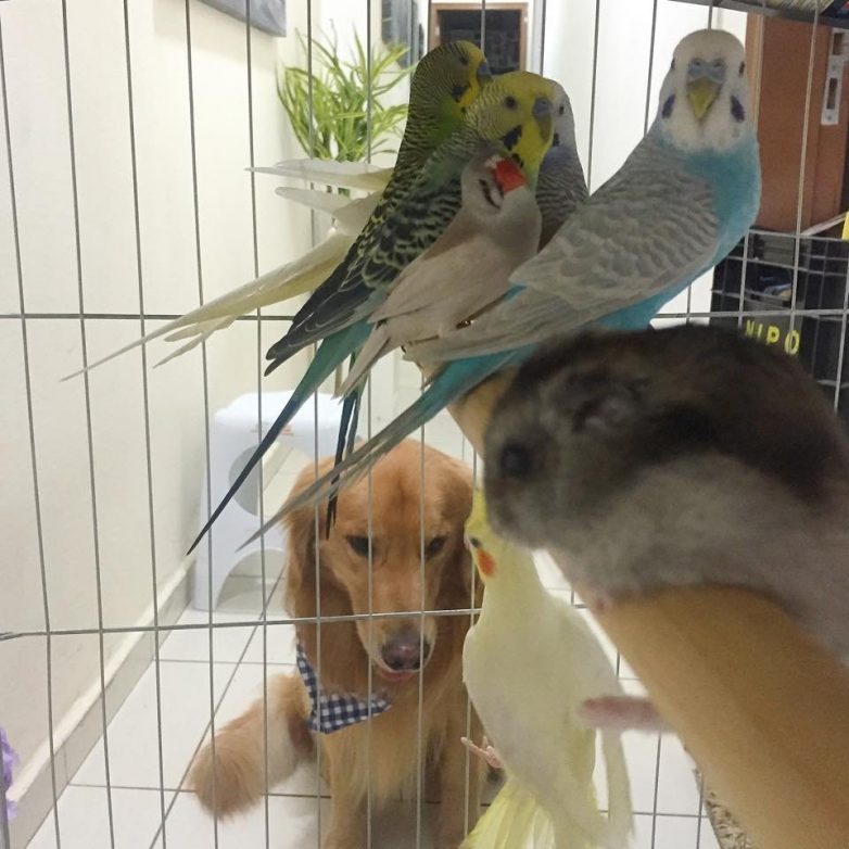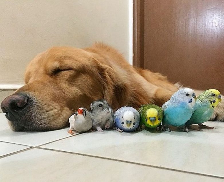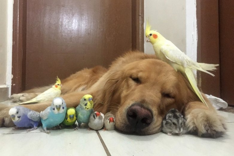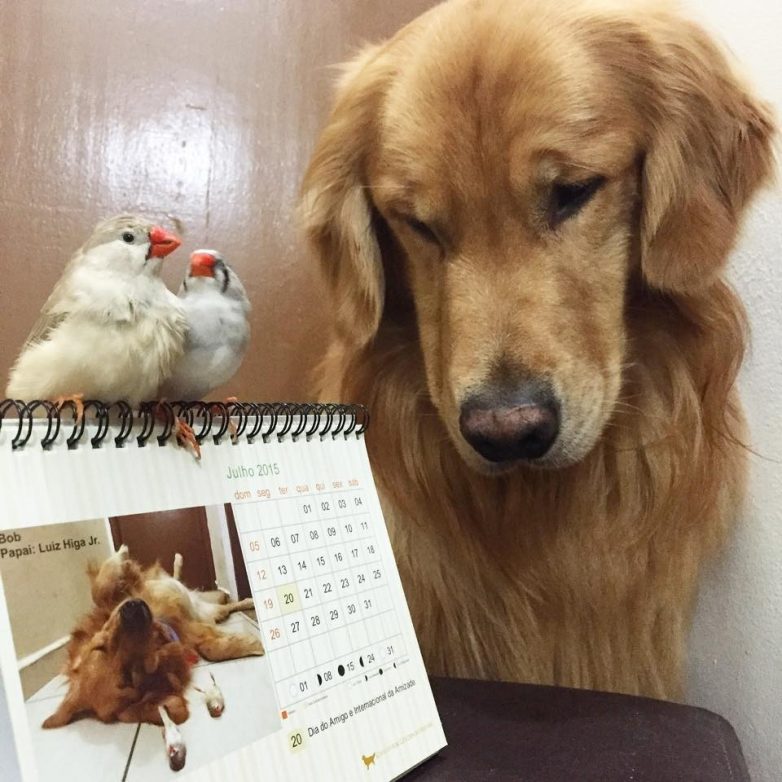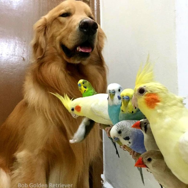 Знакомьтесь — это золотой ретривер Боб, который живет в Бразилии со своими лучшими друзьями: восемью попугаями и хомяком. Боб любит делиться своими фотографиями с друзьями на Facebook и Instagram, где он имеет более 169 000 подписчиков!