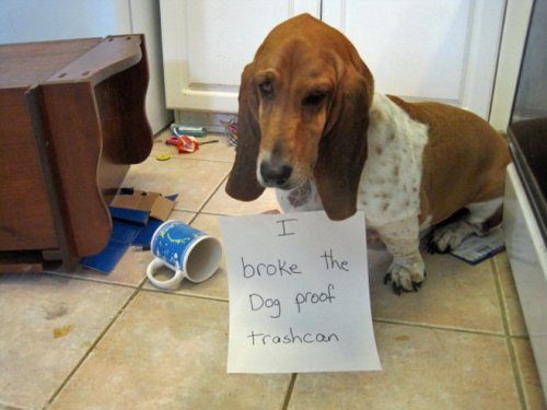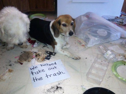 Но кто виноват, что самым интересным занятием для них является инспектирование мусорного ведра, в котором можно найти много всего интересного?! И иногда бывает очень обидно, что о весело проведённом времени свидетельствует лишь застрявшая на шее крышка!