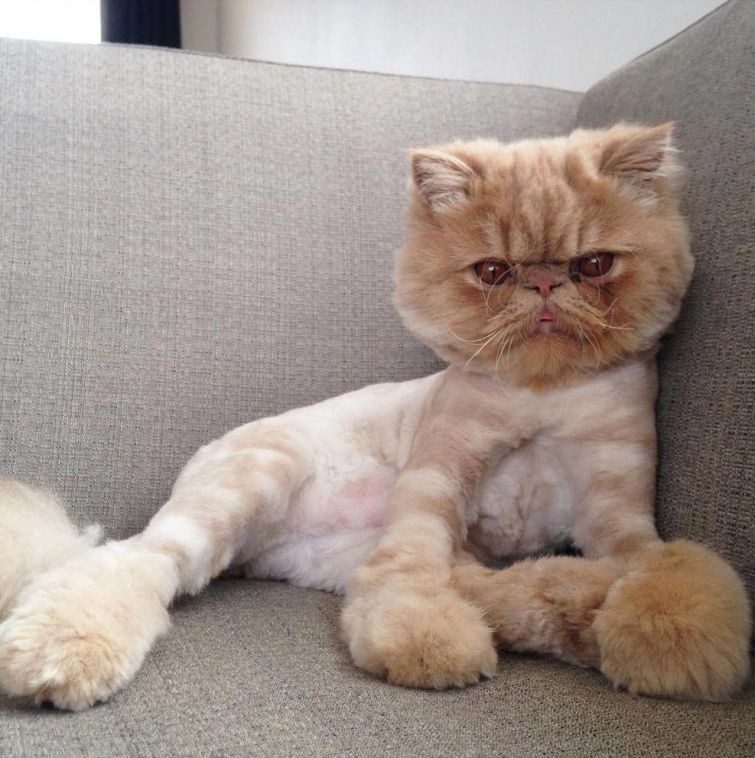 Очаровательный персидский кот, который выглядит так, как будто только что объелся