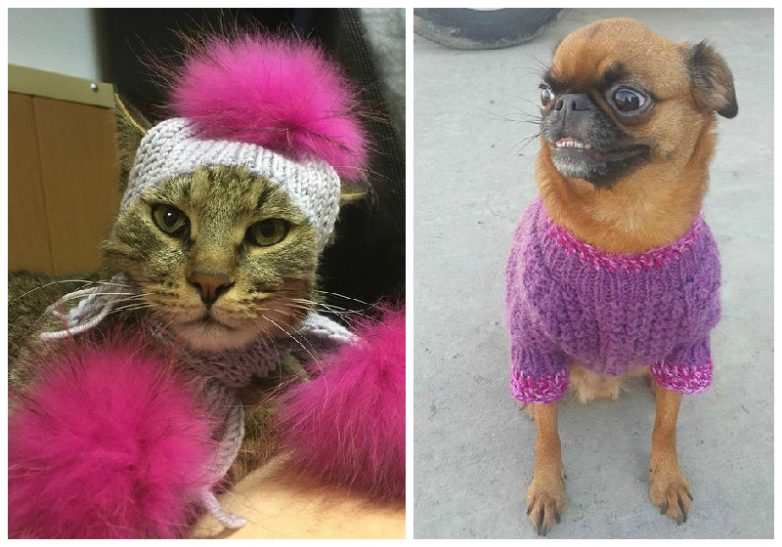 Конечно, если питомец уже стал полноправным членом семьи, то во время всеобщей подготовки к осенним и зимним холодам на него-таки что-нибудь, да нацепят:) Некоторые из животных рады такому повороту событий, а вот хмурые мордахи остальных должны заставить хозяев задуматься:)