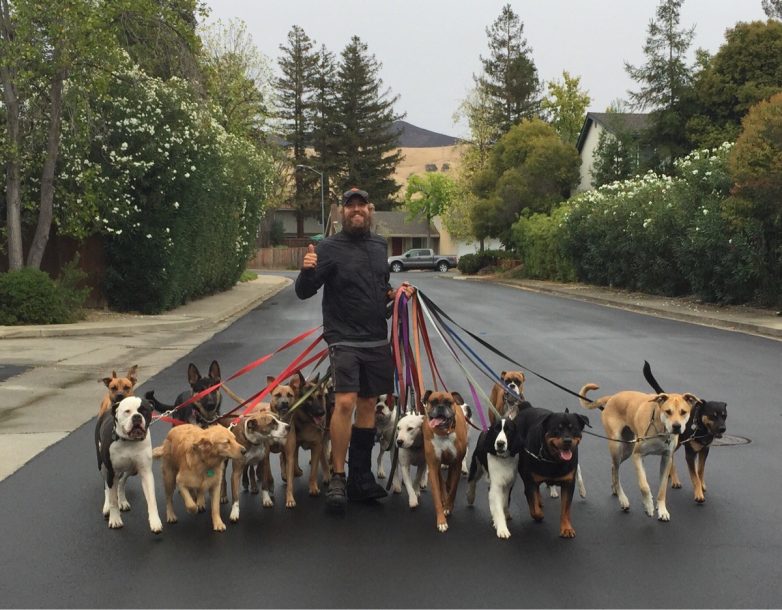 Я ВИДЕЛА ТАКУЮ ЖЕ девущку у неё было 8 собак… на ней надет пояс со специальными крючками и они прицеплены к поясу… более того она зашла с ними в трамвай…