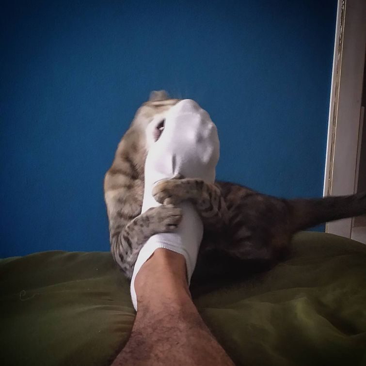 Кошки не воспринимают ваши ноги, как часть вас, они считают их отдельными существами, которые нужно уничтожить самым жестоким образом