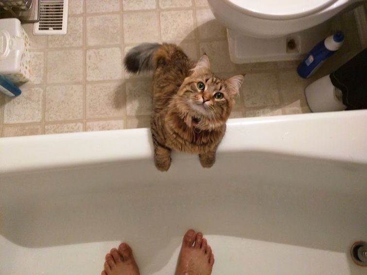 Кошки не имеют понятия о неприкосновенности частной жизни, и будут настаивать на том, чтобы быть с вами, когда вы идёте в туалет