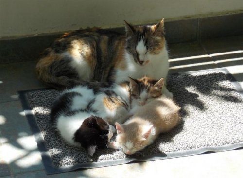 Почему-то некоторые кошки с котятами в прихожей на коврике для обуви у двери?