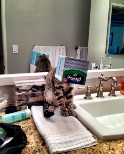 В забавные ситуации из-за своего любопытства и непосредственности попадают не только собаки, но и представители семейства кошачьих.