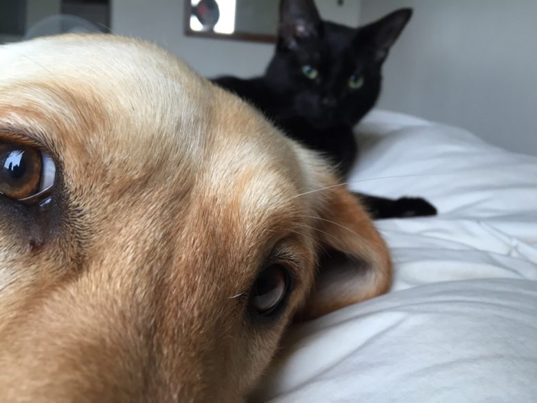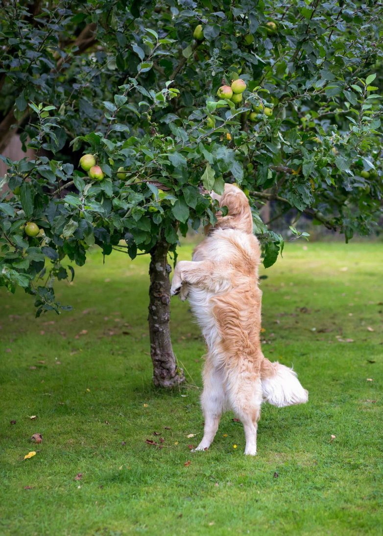 Собачка решил Еву не ждать и самому яблочко сорвать.