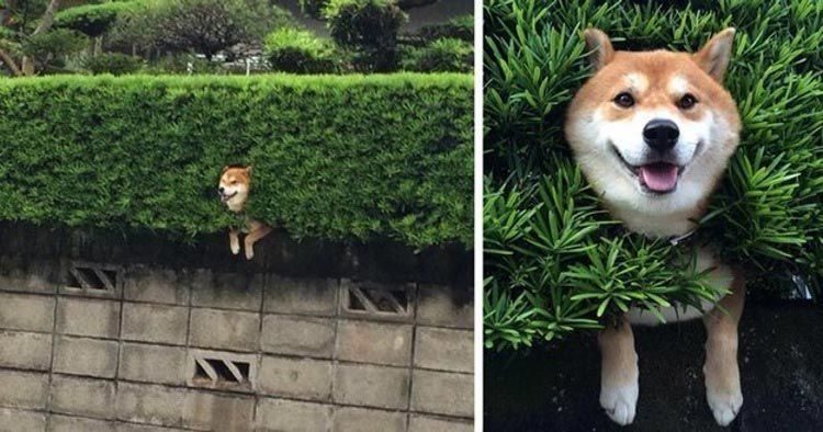 Ну и как можно забыть о собаке породы сиба-ину, застрявшей в стене..