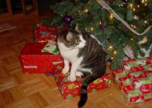 Или не кладите под ёлку заранее. В противном случае, они будут оккупированы вашим домашним питомцем …ну или слегка покусаны и поцарапаны: