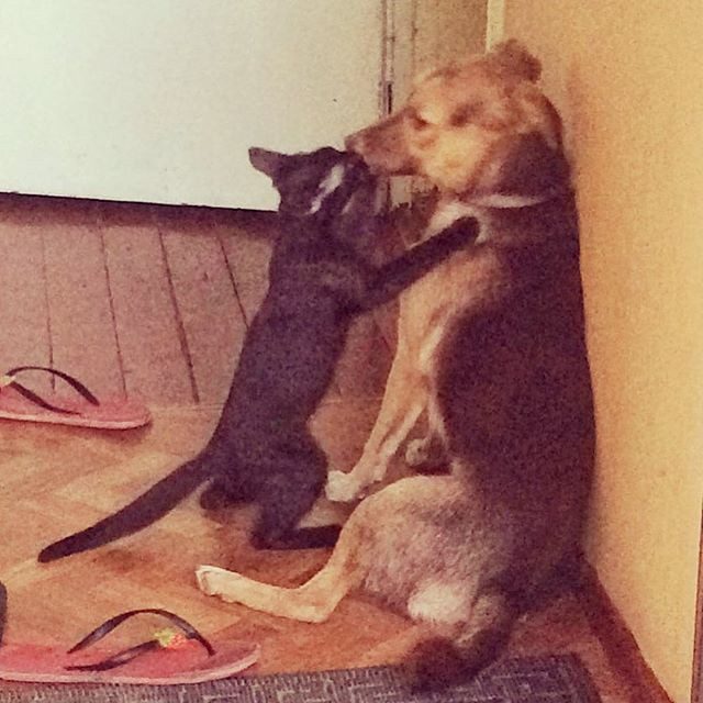 Выражение «как кошка с собакой» скоро совсем может потерять свою актуальность, ну, или поменять смысл на противоположный… Не верите? В этой подборке собраны неопровержимые тому доказательства:)