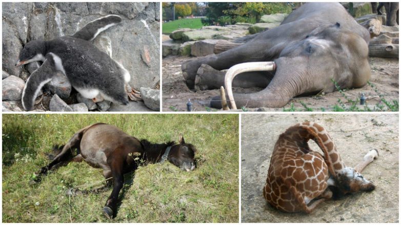 Ещё одни животные, которые опровергают мифы о собственном сне — это опоссумы. Да, у них очень сильный хвост, да, они могут висеть на нём вниз головой на ветке дерева, но они не спят в такой позе. Вообще опоссумы ночные животные, днём они отдыхают, спят, а как стемнеет, отправляются за добычей. Спят опоссумы много, иногда до 18-20 часов в сутки. Для этого они располагаются на ветке дерева, или свернувшись клубочком в дупле и другом укрытии.