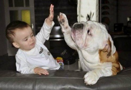 класс! говорят, что уровень интеллекта собаки примерно как у 2 летнего ребенка, поэтому понятно, почему они так близки)