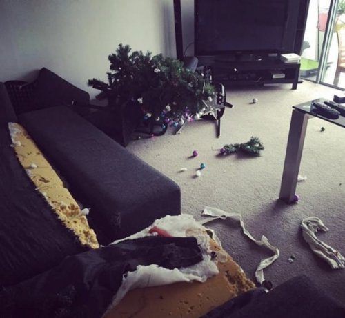 Не все домашние питомцы могут равнодушно пройти мимо новогодней ёлки или аккуратно упакованных подарков.