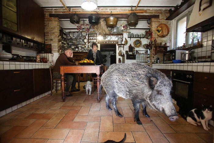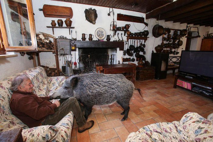 Два года назад пожилая семейная пара, Дориан и Раффаэла Джустоцци из Италии, нашли в лесу маленького поросенка дикого кабана, который остался совсем один.